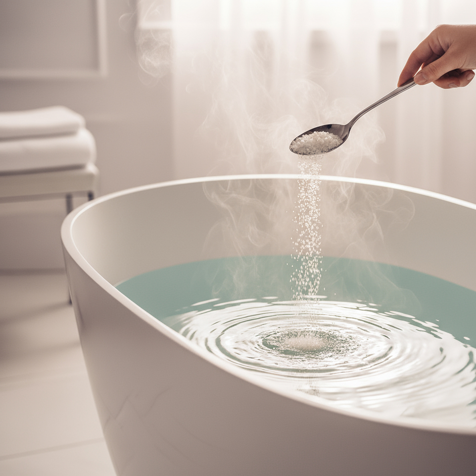 エプソムソルト(硫酸マグネシウム)を主成分に、オリジナルブレンドの天然エッセンシャルオイルを配合した「とっておきのバスタイム」を演出する入浴剤を提案します。